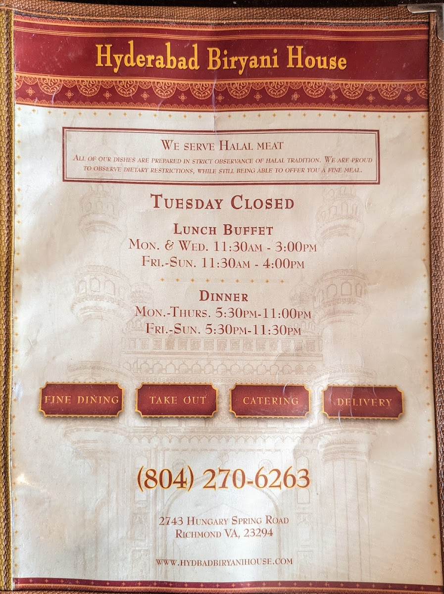 Overall, if you're in the Richmond area, this spot is definitely worth a visit. With its savory offerings, heartwarming service, and commitment to authentic flavors, Hyderabad Biryani House is sure to win a place in your heart and palate.
